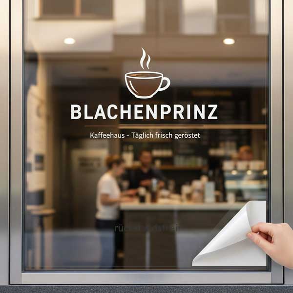 Oft verwendet an Glastüren, Schaufenster, oder auch Hinterglasverklebungen.